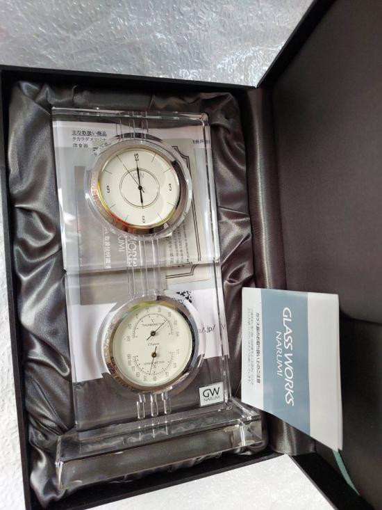 ***วัดใจ***นาฬิกาและเครื่องวัดอุณหภูมิความชื้นแบบตั้งโต๊ะจากแบรนด์ NARUMI (Glass Works) นาฬิกาตั้งโต๊ะระดับพรีเมียม พร้อมกล่องเดิมๆ |