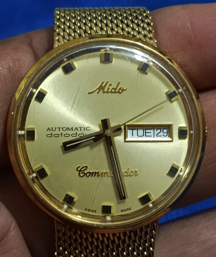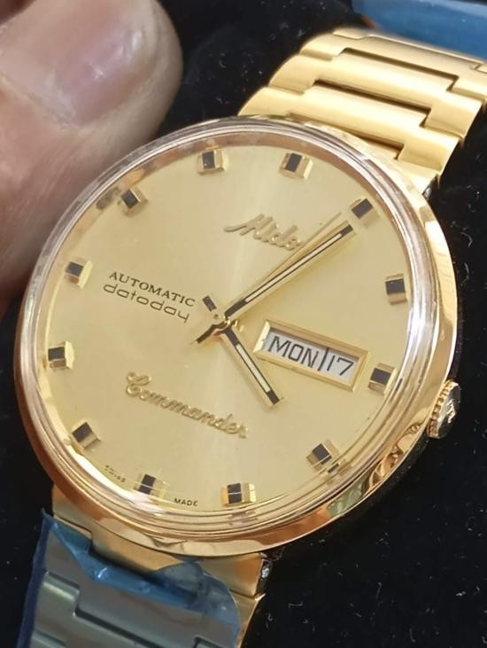 นาฬิกา MIDO Commander Shade M8429 นาฬิกาข้อมือผู้ชาย MIDO Commander เรือนทองสายถัก พร้อมลายเซ็นต์ และรอยจารครูบากฤษณะ |