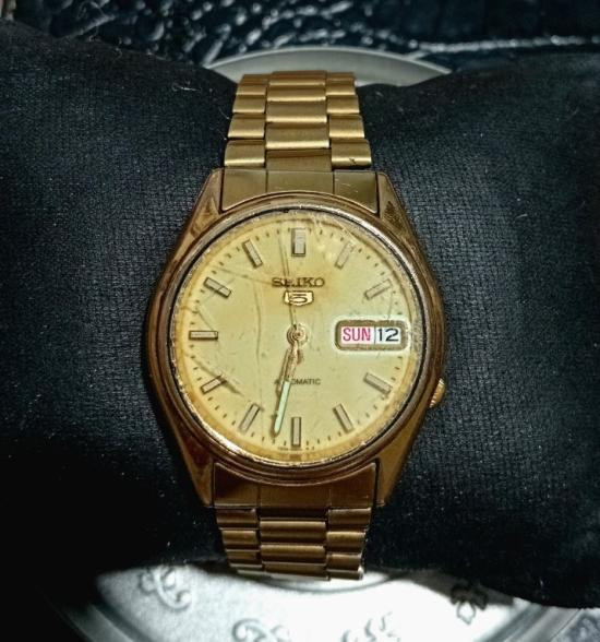 นาฬิกฬ Seiko 5 Automatic รุ่น 7S26-3170 หุ้มทองคำแท้ มือสอง เข็มไม่เดิน |