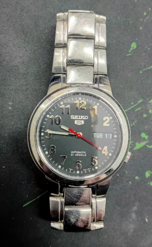 นาฬิกา SEIKO 5 ระบบ ออโตเมติค หน้าสแตนเลส วัน/วันที่ เดินดี สภาพ พร้อมใช้ |