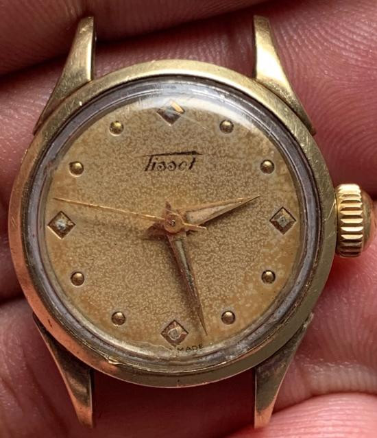นาฬิกาเก่า วินเทจ Tissot Swiss Made ทองแปะ ระบบไขลาน ทอง 14 k ยิง% ได้ 57.13 เดินปกติ หายากน่าสะสม |
