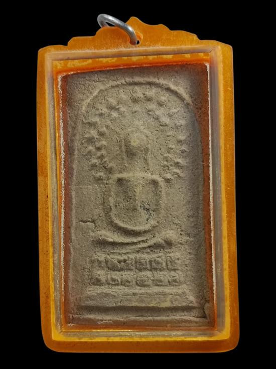 พระสมเด็จเกจิสร้างปั๊มหมึกข้างหลังพอมองเห็นลางๆ |