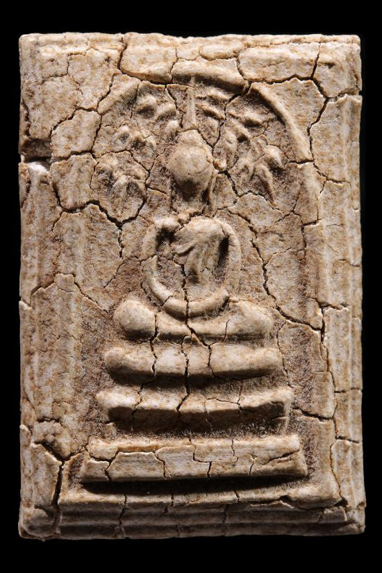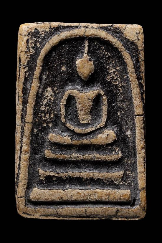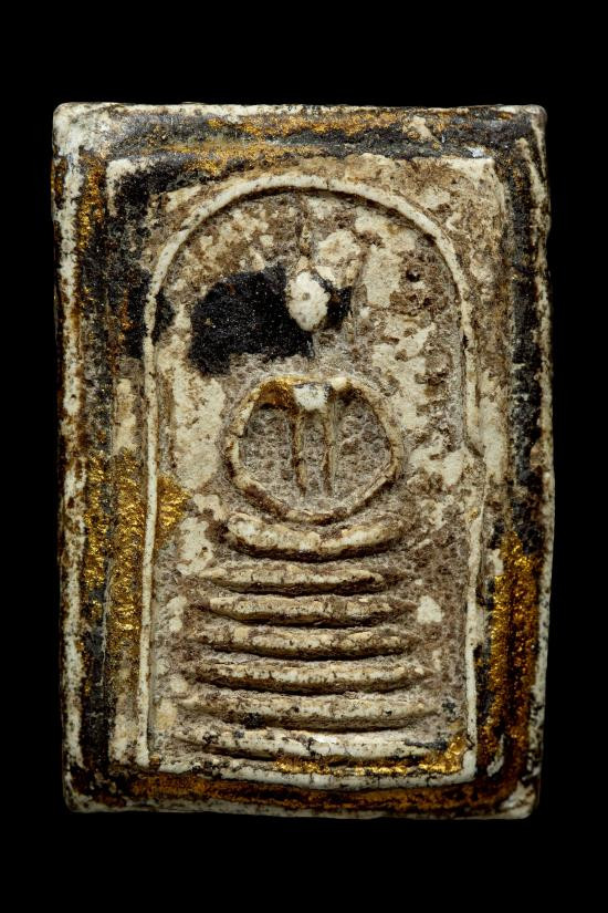 พระสมเด็จเนื้อผงเก่า มีคราบลงรักเก่าประปรายไม่ทราบที่