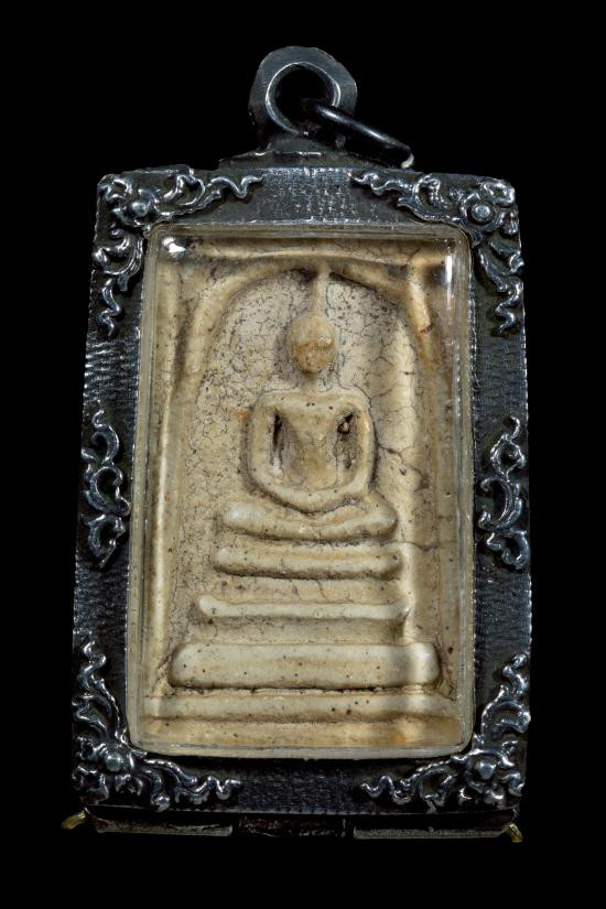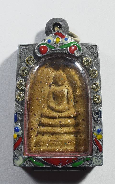 พระสมเด็จเก่า พร้อมตลับเงิน (ผสม) ฝังพลอย ลงยา ไม่ทราบที่