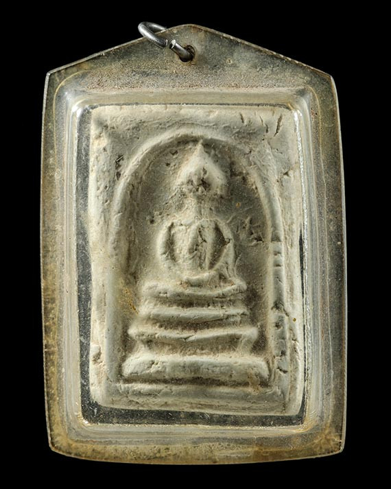 พระสมเด็จเก่า พร้อมตลับเงิน (ผสม) ฝังพลอย ลงยา ไม่ทราบที่ เหมามาคะ |