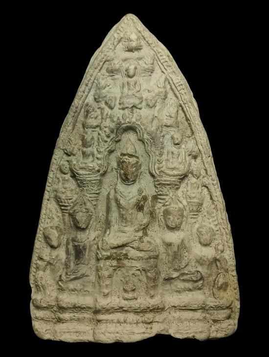 พระพิมพ์พระพุทธรูปปางมารวิชัยในซุ้มปราสาท (พระสิบสอง) เนื้อดิน ไม่ทราบเกจิ เก่ามีอายุ สวยเดิมครับ |