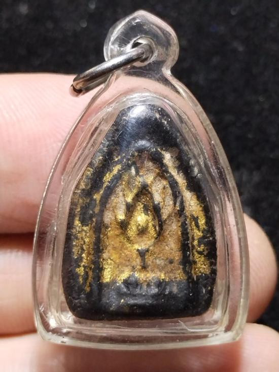 พระเนื้อผงว่านเก่าแท้ไม่ทราบที่ ปิดทองในพิมพ์หลังจาร เลี่ยมพลาสติกพร้อมขึ้นบูชา |