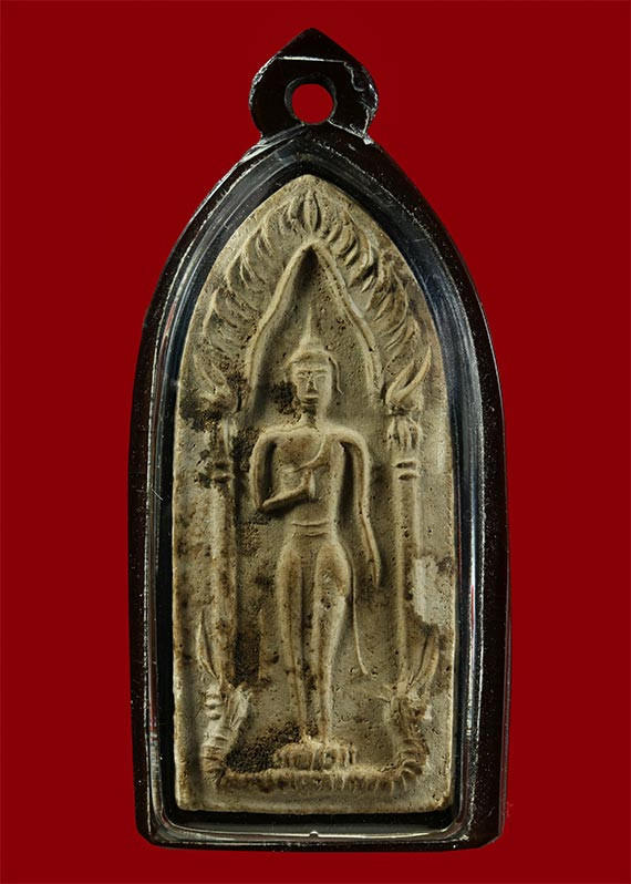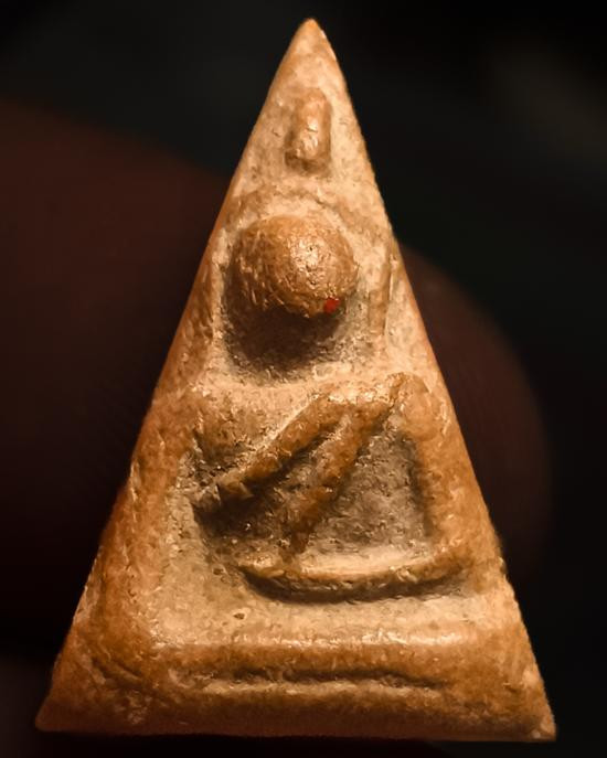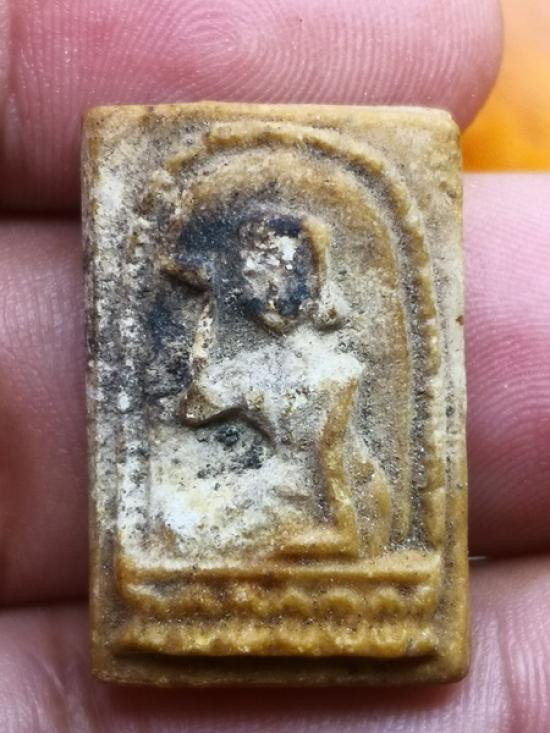 พระผงสุพรรณ ด้านหลังมีรอยนิ้วมือ เนื้อผงน้ำมัน เก่าไม่ทราบที่ เคาะเดียวแดง |