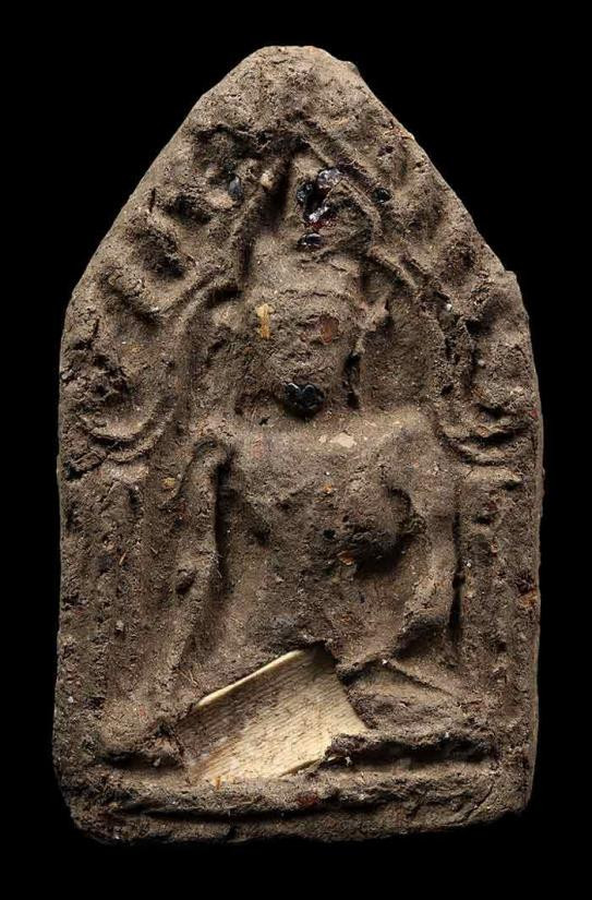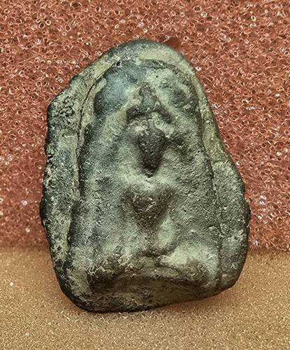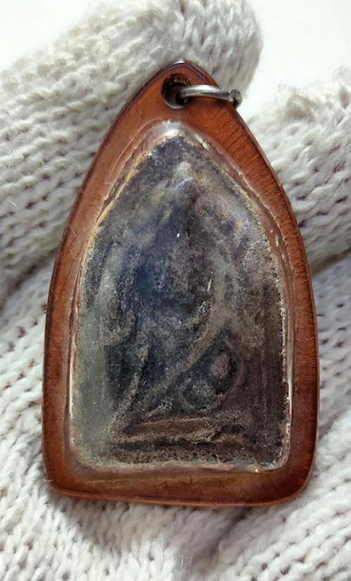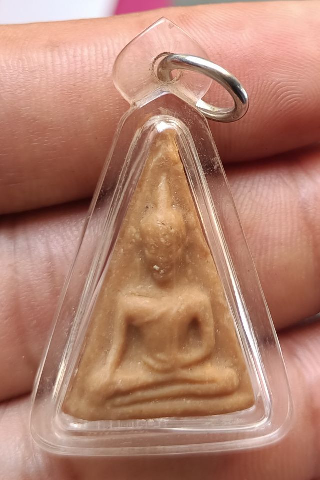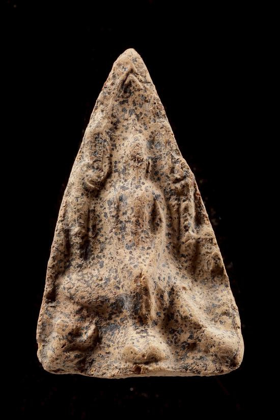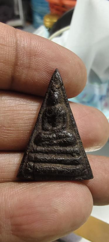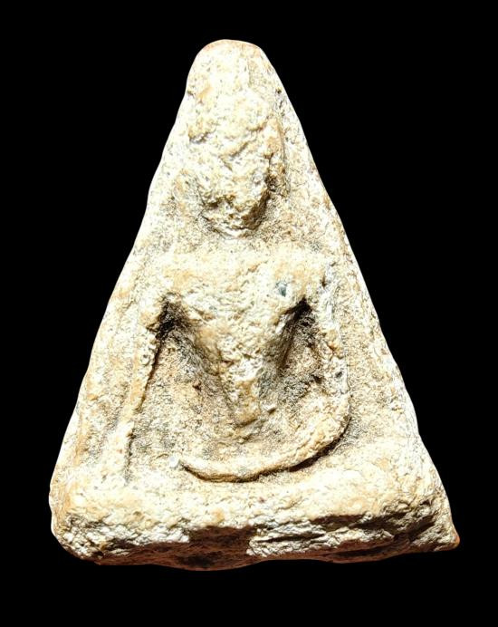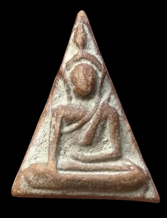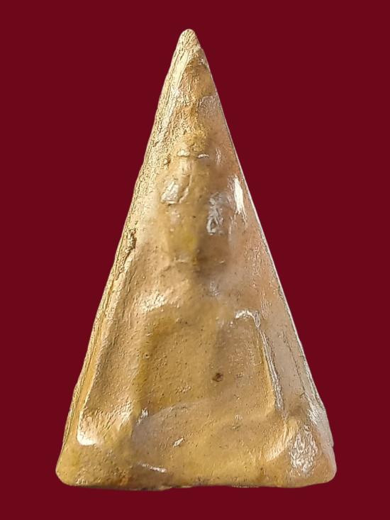 พระสามเหลี่ยมเนื้อผสมว่านเก่าไม่ทราบที่ ได้บำบัดมาราคาเบาๆครับ |