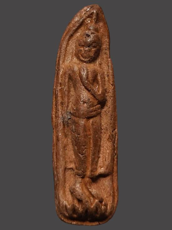 A8297.พระเนื้อดิน ปางลีลาข้างเม็ด ไม่ทราบที่ เคาะเดียวเเดง