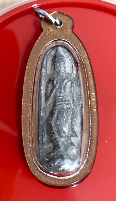 A6785.พระลีลา เนื้อดิน เลี่ยมพลาสติก ไม่ทราบที่ เคาะเดียวเเดง |