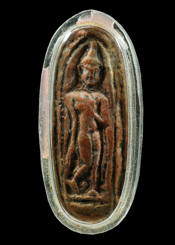 พระร่วงยืนเนื้อผงน้ำมัน สวยเดิมเลี่ยมเก่า |