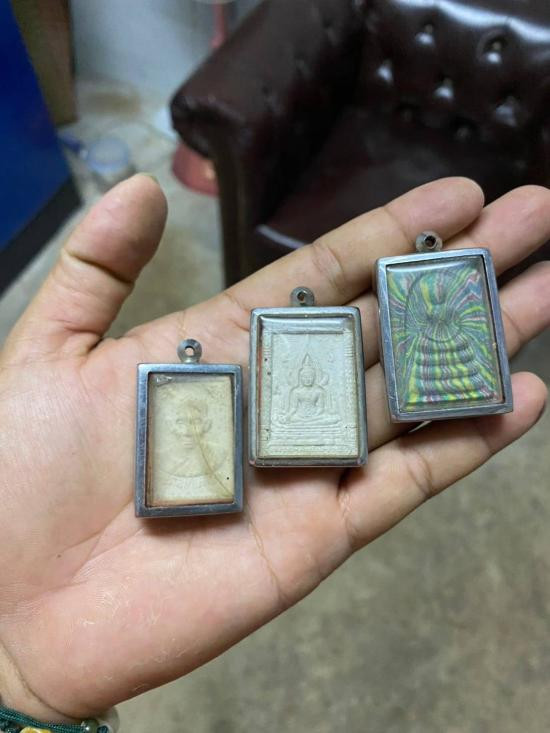 พระผงรูปเหมือนคละ 3 องค์พร้อมเลี่ยมขอบสแตนเลสไม่ทราบที่ |