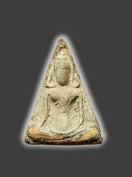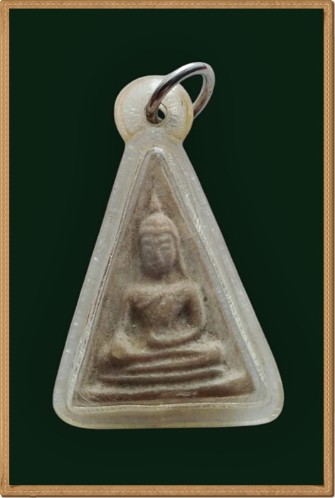 พระเนื้อผงทรงไก่ เก่า สวย เลี่ยมเงิน ไม่ทราบที่ครับ |