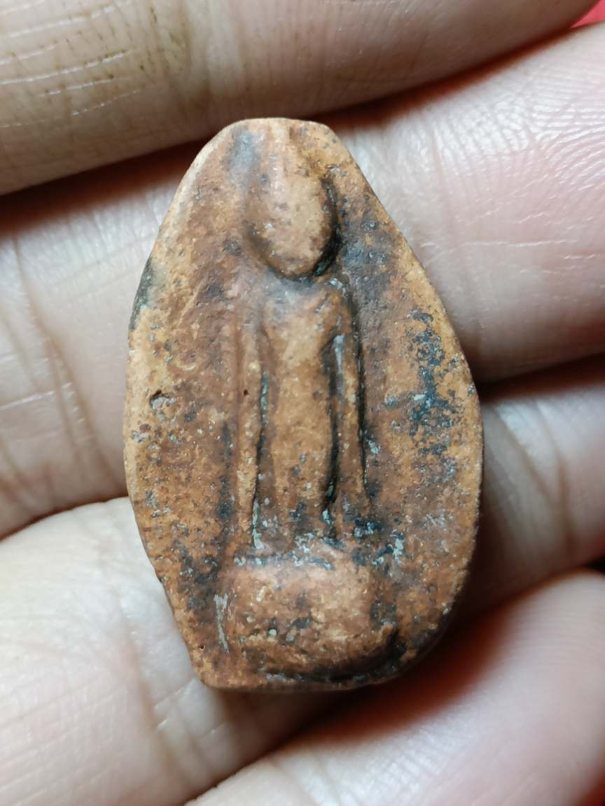 //เคาะแดง//พระเนื่อผงหลังลายนิ้วมือ เก่าไม่ทราบที่ครับ |