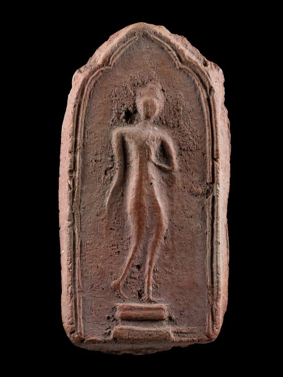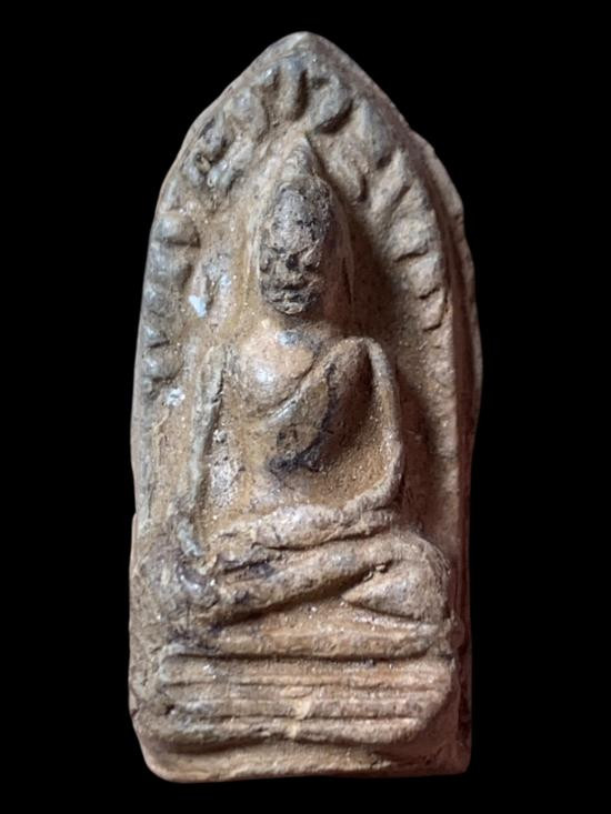 A5887.พระเนื้อดิน พิมพ์พระซุ้มกอ ไม่ทราบที่ เคาะเดียวเเดง |