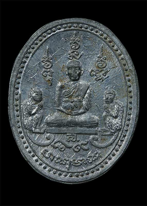 พระพิมพ์วัดคลองขอม หลังจารมือ ( ไม่ทราบที่ ) - เนื้อตะกั่ว - พระเกจิ-อาจารย์ ยุคหลังสร้าง |