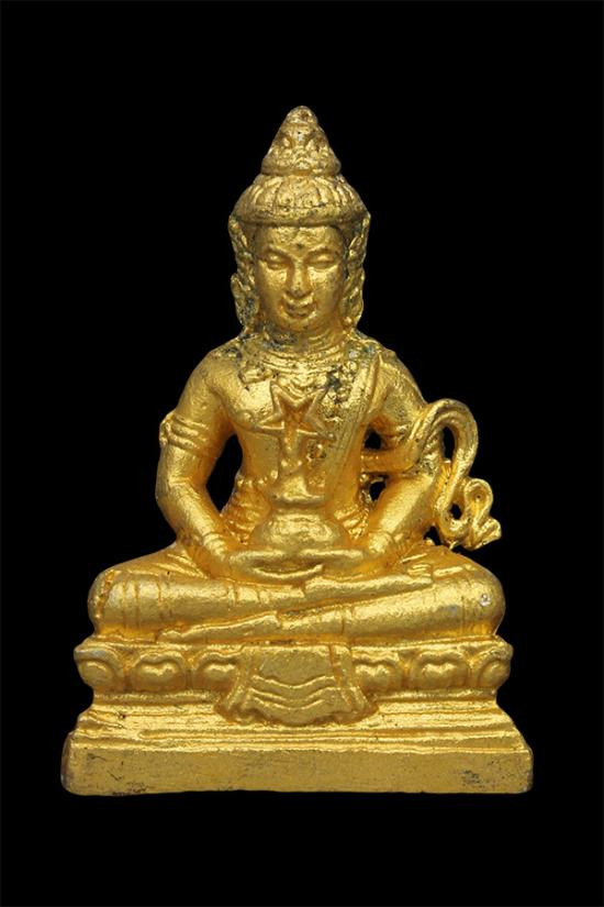 พระยอดธง โลหะผสม หล่อเก่า ไม่ทราบที่ กะไหล่ทอง สวยครับ |