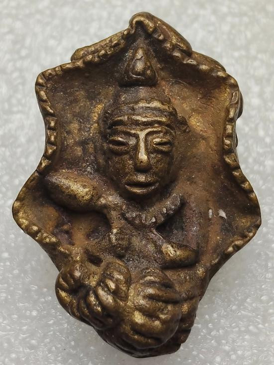 ##วัดใจหลักสิบ## รูปหล่อทรงใบโพธิ์ ไม่ทราบที่ พร้อมเลี่ยมเก่า |