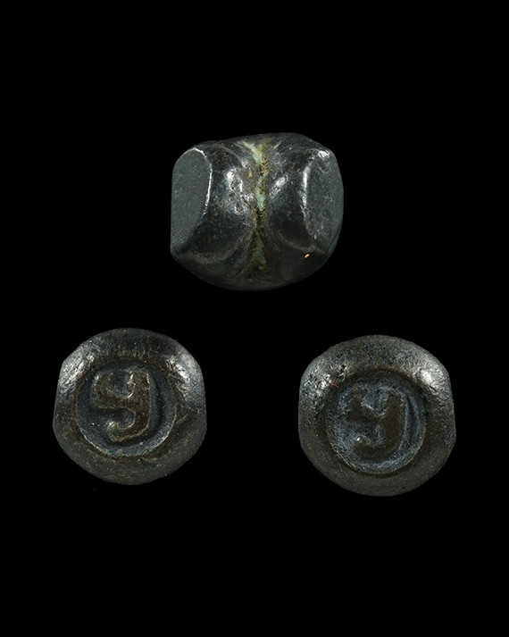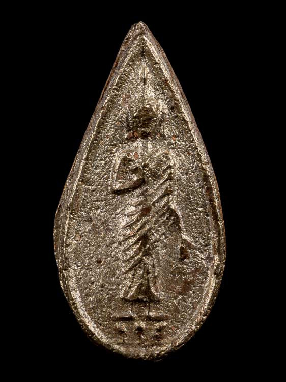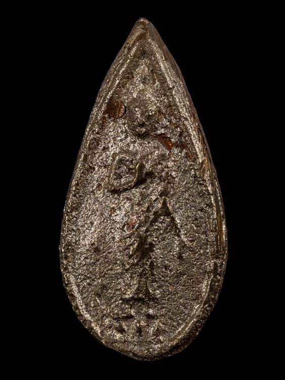 (เริ่มที่200)เหรียญหล่อโบราณ พิมพ์หยดน้ำ หละงยันต์ เนื้อตะกั่วเก่า(ไม่ทราบที่) ขนาด ฐาน 1.9 cm สูง 2.7 cm |