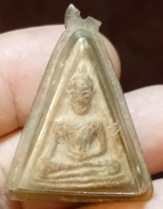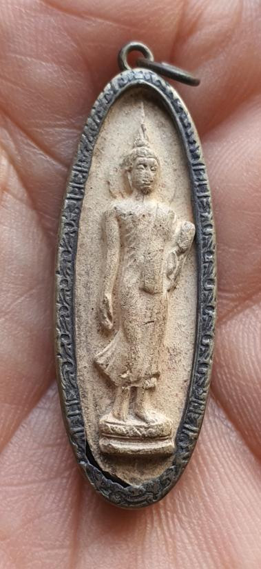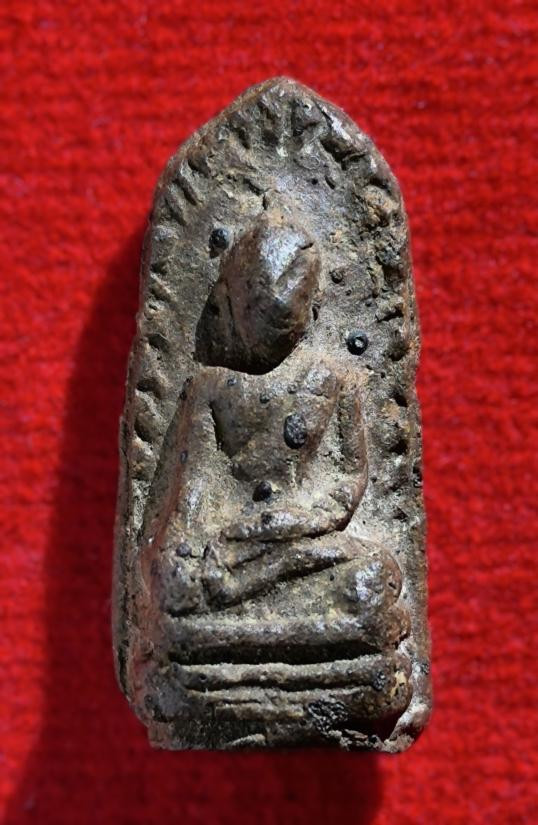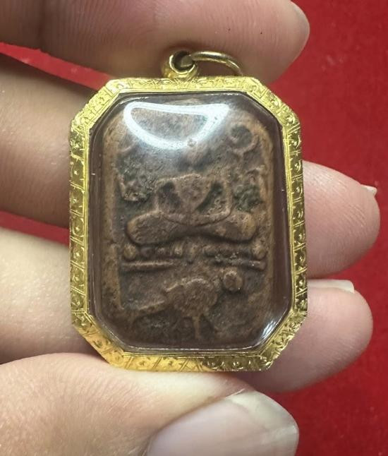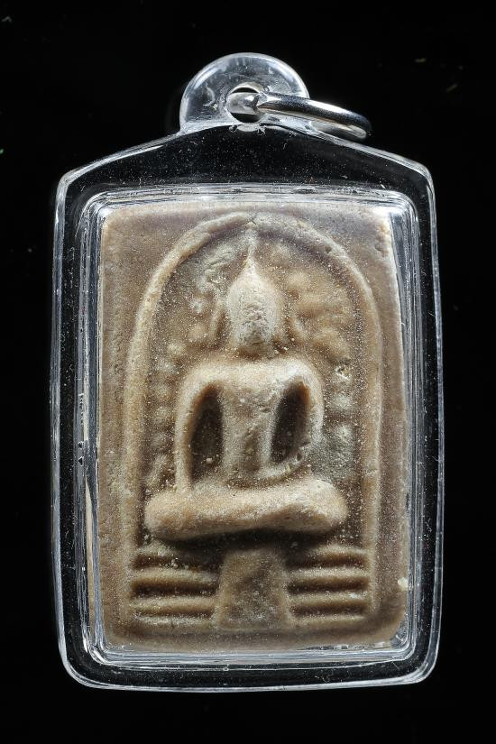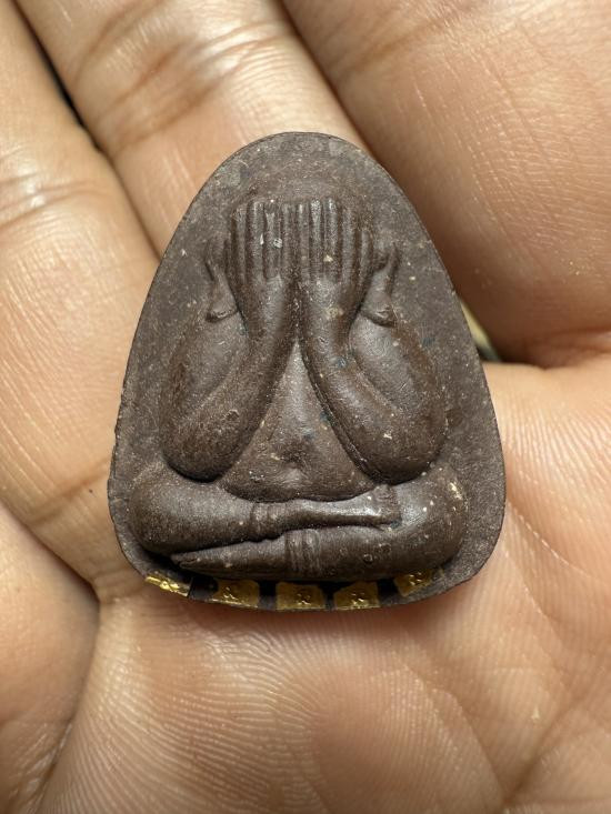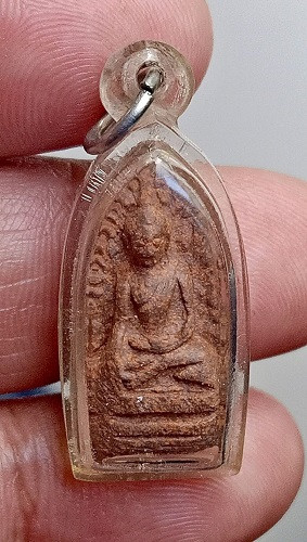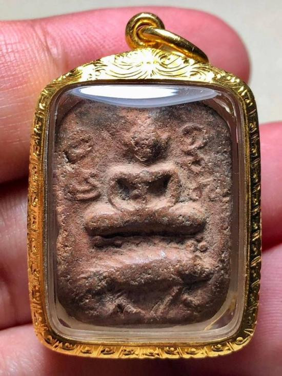 พระเนื้อดินพิมพ์นางพญาหลวงพ่อกวยวัดโฆสิตารามอยู่ในเลี่ยมโบราณครับ |