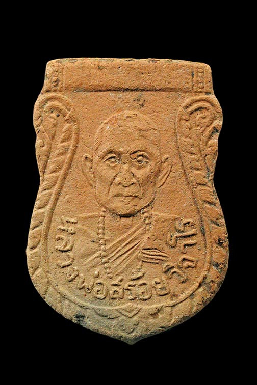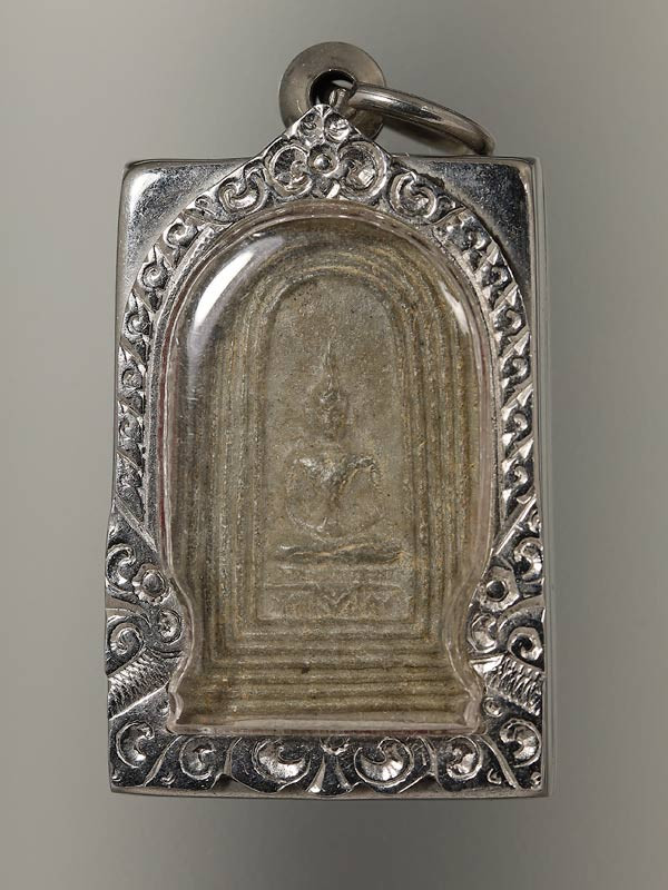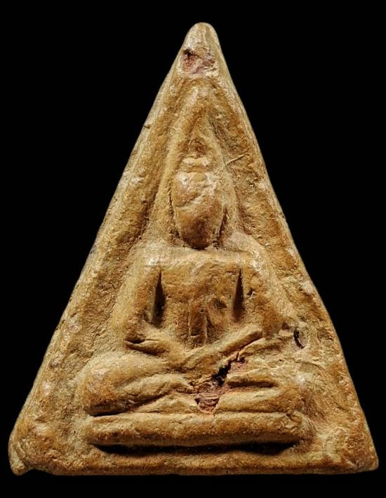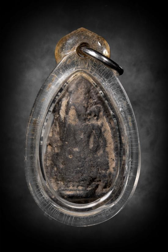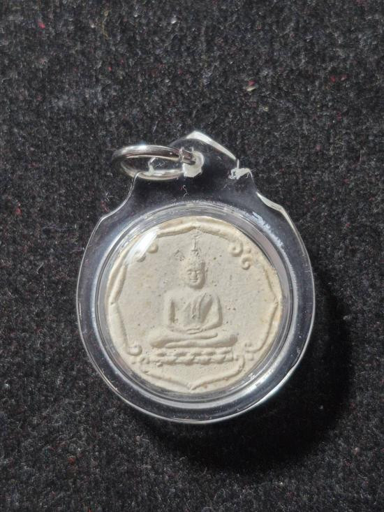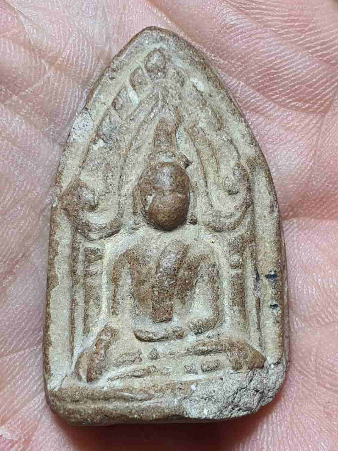 พระเนื้อดินพิมพ์นางพญาหลวงพ่อกวยวัดโฆสิตารามอยู่ในเลี่ยมโบราณครับ |