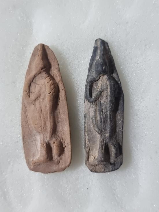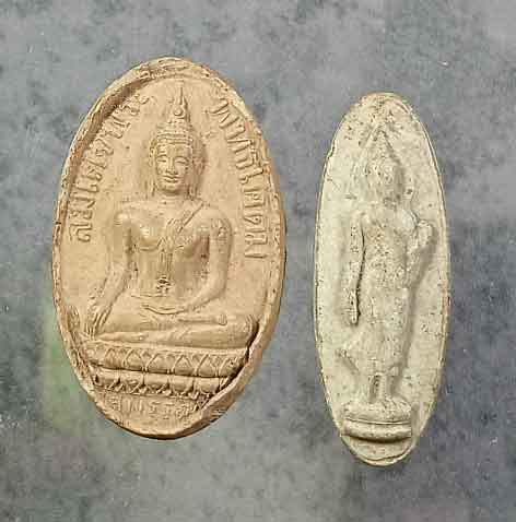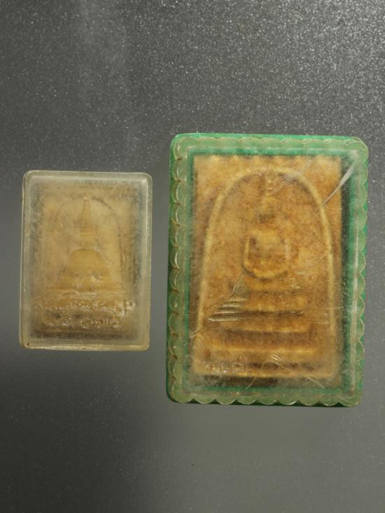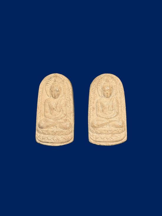 พระพิมพ์สมเด็จพระพุทธโคดมหลังพุทโธ เนื้อดินเผา หลวงพ่อขอม วัดไผ่โรงวัว เนื้อดินเผา ปี 2500 + พระลีลาเนื้อดิน 25 ศตวรรษ |