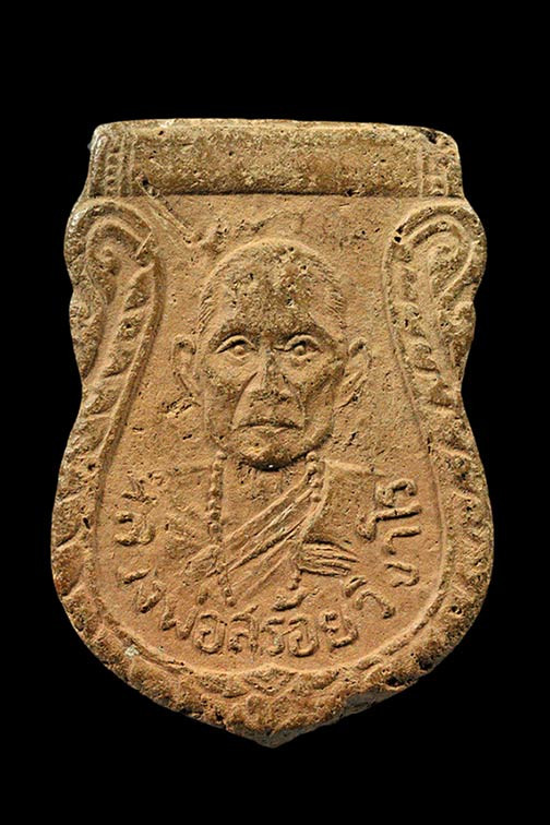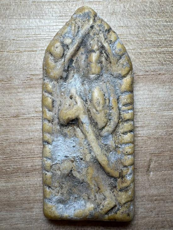 วัดใจ พระพิมพ์ใบโพธิ์เนื้อดิน ขอบทอง หลังยันต์ดวง ส1 หลวงพ่อลี วัดอโศการาม |