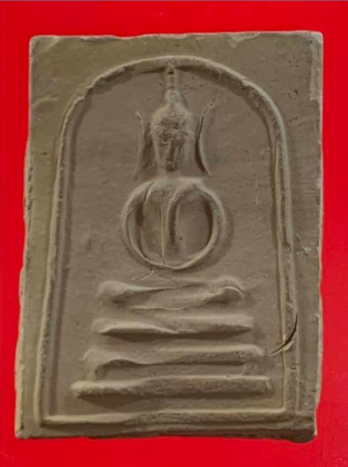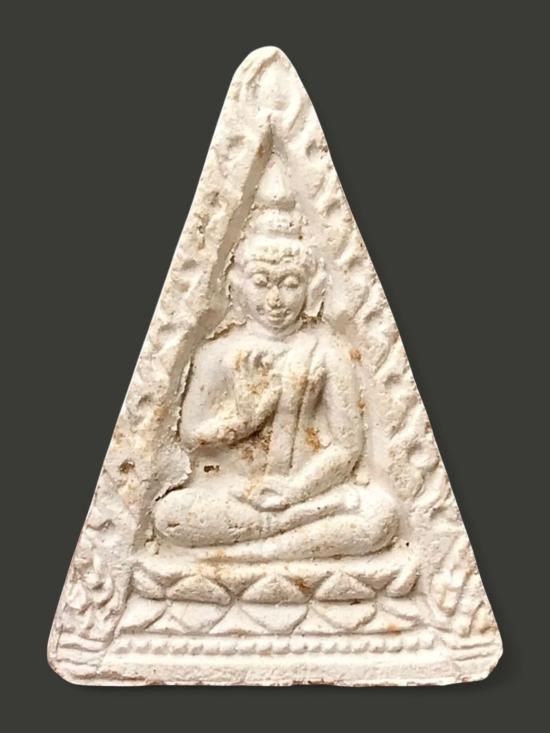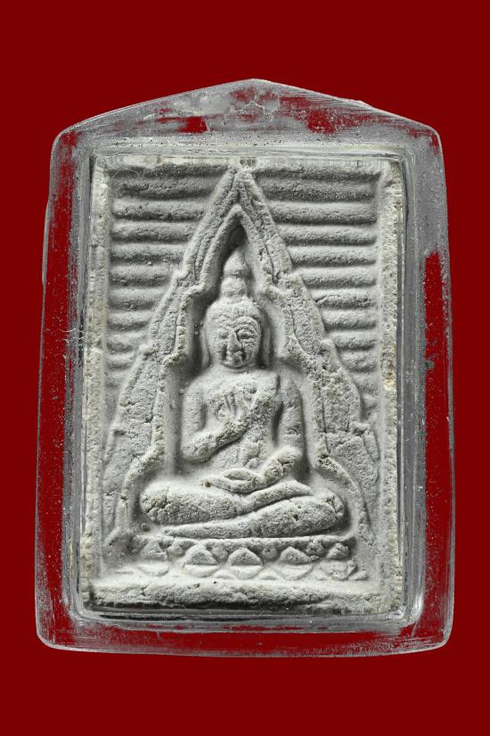 หลวงพ่อเพชร พิมพ์สี่เหลี่ยม เนื้อผงขาว หน้าผ้าหลังผ้า ปี 2473