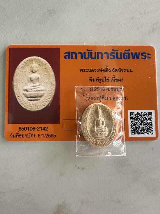 *เคาะเดียว*พระหลวงพ่อติ้ว พิมพ์รูปไข่ เนื้อผง ปี 2518 จ.ชลบุรี (หลวงปู่ทิม ปลุกเสก) พร้อมบัตรรับรองการันตีพระ |