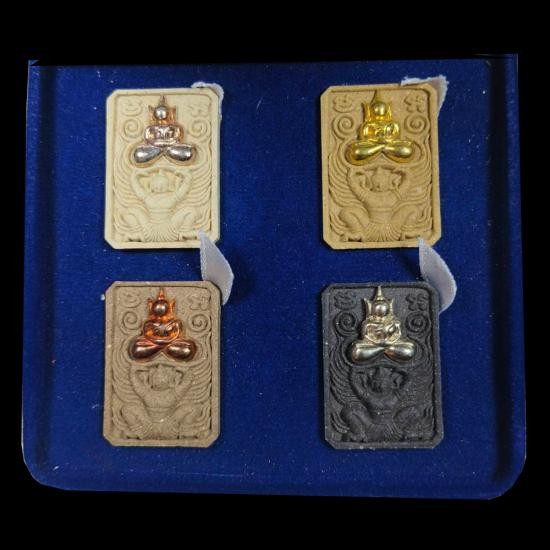 ชุดพระผงหลวงพ่อใหญ่ทรงครุฑ รุ่น กรมตำรวจ เลื่อนยศ เลื่อนบารมี วัดปราสาท จ.นนทบุรี เนื้อผงงานหน้ากากหลังฝังตราโล่ตำรวจเงิน 4 องค์ แดงเคาะแรก |