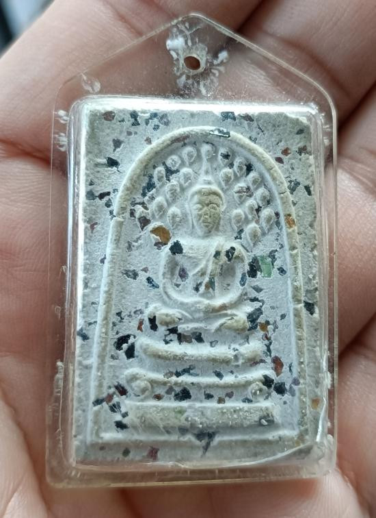 พระเนื้อผงว่านพุทธคุณฝังโรยพลอย พิมพ์พระสมเด็จปรกโพธิ์หลังพระปรุหนัง ออกวัดราชนัดดา กทม. หลวงพ่อกวย วัดโฆสิตาราม จ.ชัยนาท ร่วมปลุกเสก |