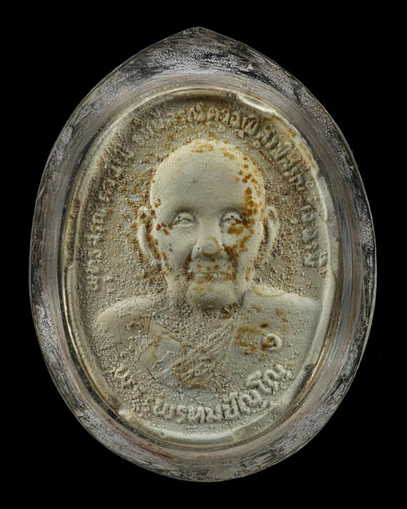 หลวงพ่อขัน วัดนกกระจาบ จังหวัดพระนครศรีอยุธยา พิมพ์แซยิด เนื้อดินเผา สร้างปี 2475 ประกันตามกฎ |