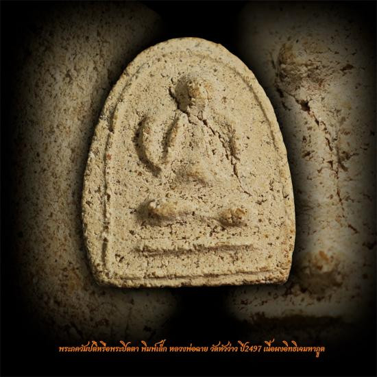 << วัดใจ >> พระขุนแผนปลัดทวี พิมพ์ทรงปางสมาธิ เนื้อดิน หลังลายผ้า ปีพ.ศ.2490 หลวงพ่อมุ่ย,หลวงพ่อแพ,อ.นำ วัดดอนศาลา ฯลฯ ปลุกเสก องค์ที่ 2 |