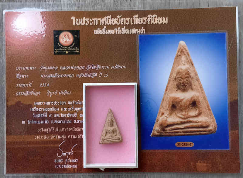 วัดใจ.. ราคาทุนนางพญาหลังอิติหลวงพ่อกวยปี15เนื้อดินผสมผงมาพร้อใบประกาผศเคาะเดียวแดงครับ |