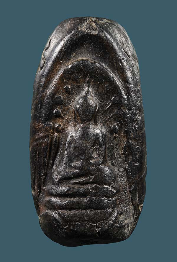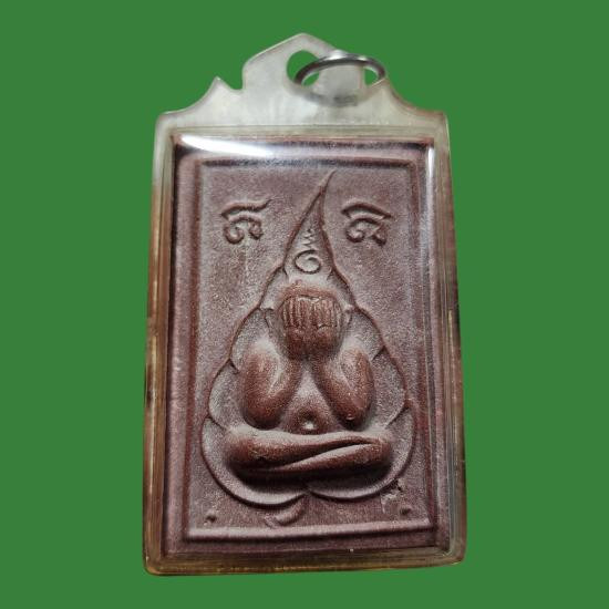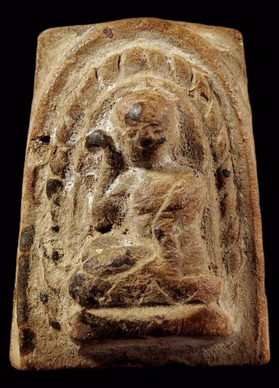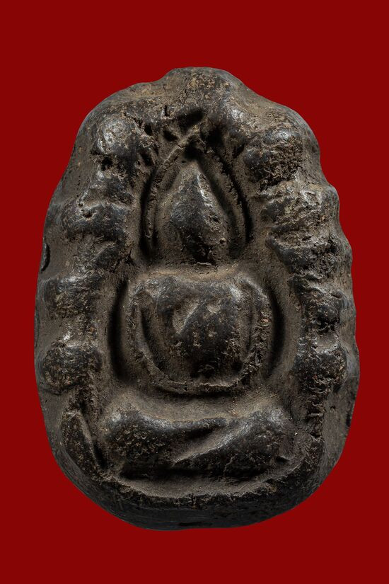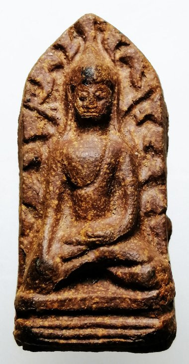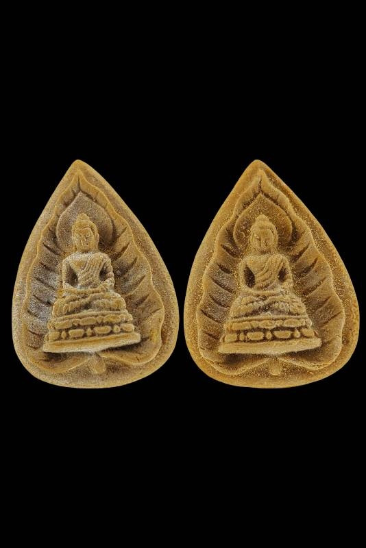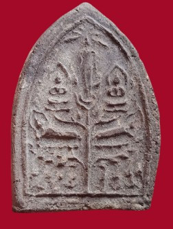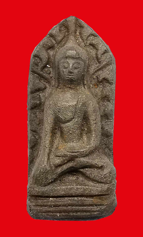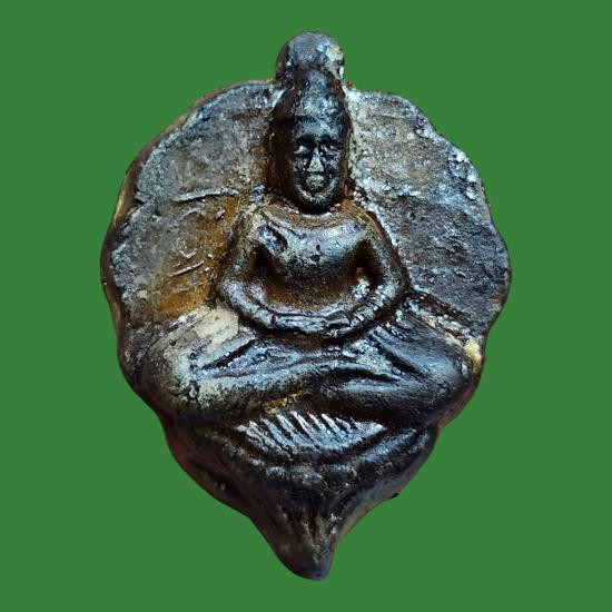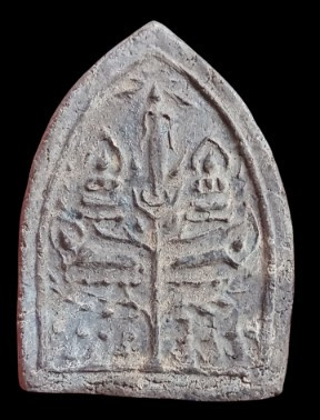 พระพิมพ์ใบโพธิ์เนื้อดินลงรักเดิมหน้าตาชัดก้านติดเต็มหลังยันต์ดวง ส1 หลวงพ่อลี วัดอโศการาม พ.ศ2500 |