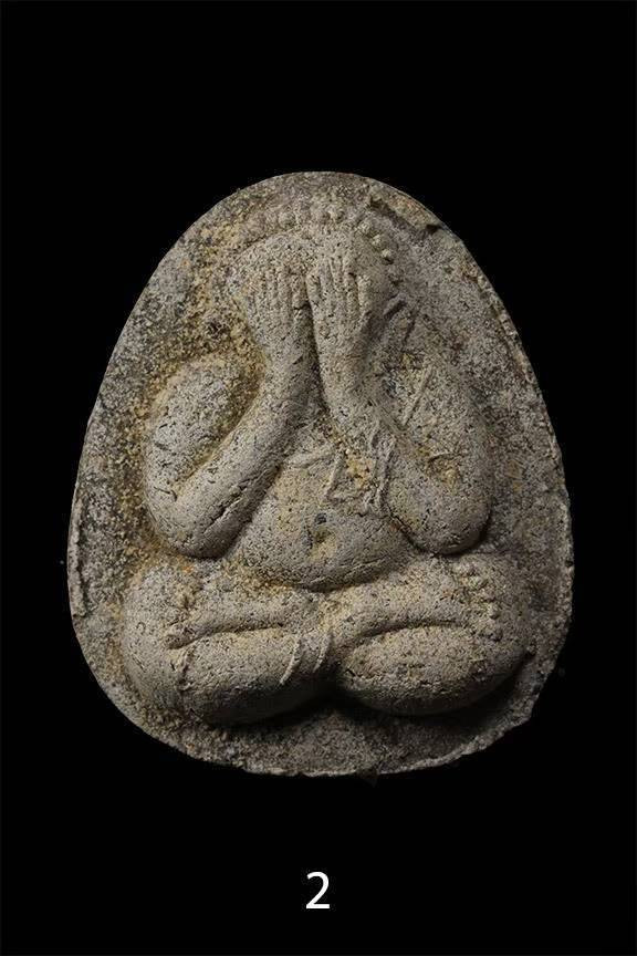 พระอรหัง หลังอุ หลวงปู่เฮี้ยง วัดป่า ชลบุรี เนื้อผงคลุกรัก ปี2498 สวยๆครับ |
