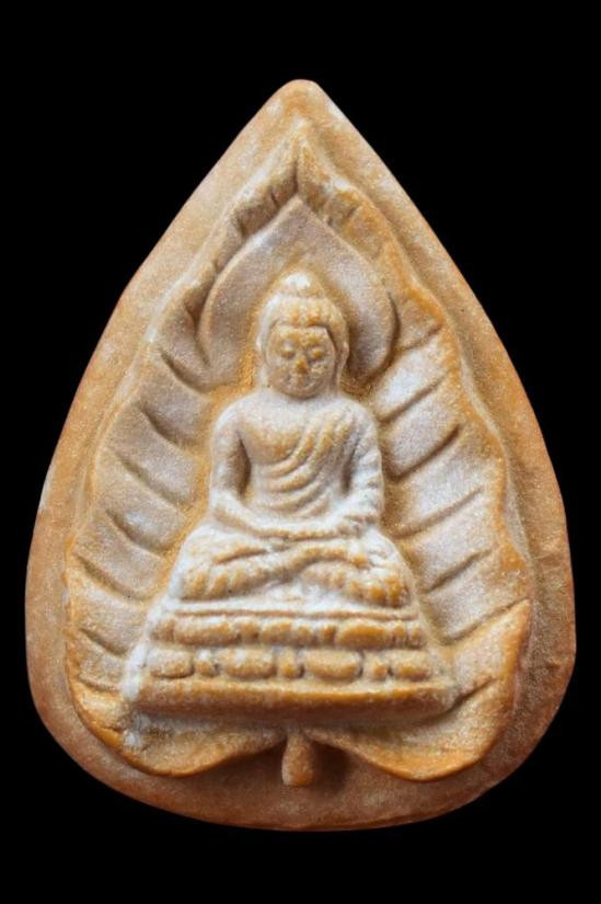((วัดใจ)) พระเนื้อผงรูปเหมือนใบโพธิ์ หลวงปู่คำดี ปภาโส วัดผาปู่ อ.เมือง จ.เลย ปี2517 ผสมเส้นเกศา |