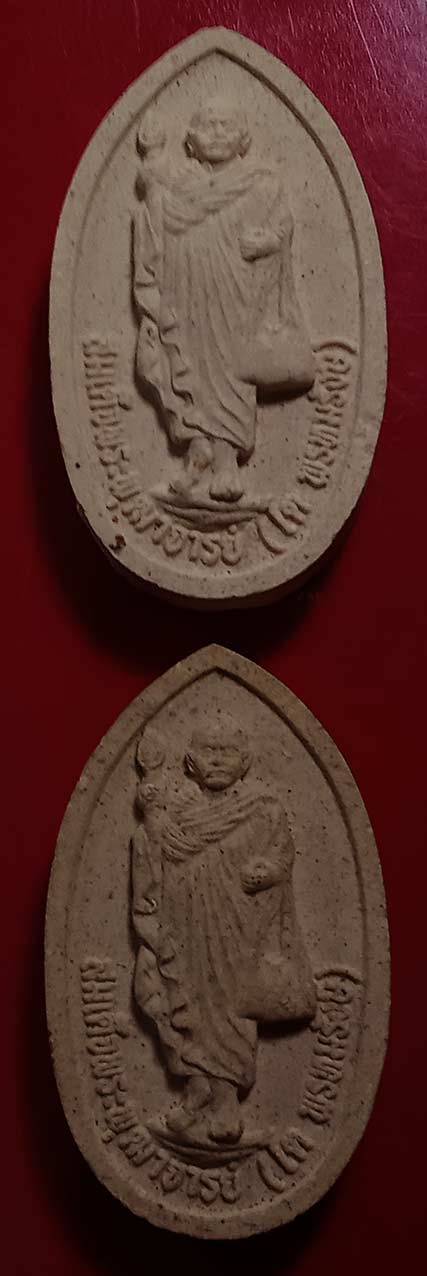 พระสรงน้ำรุ่นแรกพิมพ์สองหน้า สมเด็จพระพุทธโฆษาจารย์ (เจริญ) วัดเขาบางทราย ปี 2484 จ.ชลบุรี |
