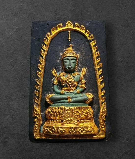 พระแก้วมรกตพิมพ์ใหญ่ ลงรักปิดทอง หลังยันต์ดวงประสูติพระพุทธเจ้า หลวงพ่อเริ่ม วัดบางพระ จ.ชลบุรี |