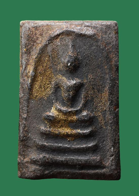 A2772.วัดใจ พระชัยวันฒ์ เนื้อผงคลุกรัก ปิดทองเก่า ไม่ทราบที่ เคาะเดียวเเดง |