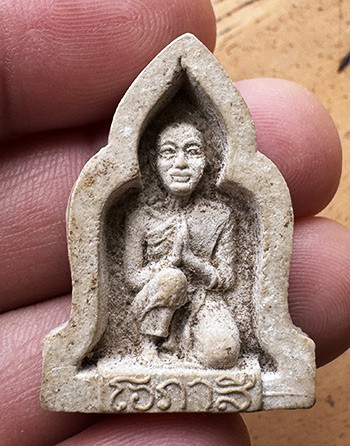 รูปเหมือนเนื้อผงผสมว่าน พิมพ์หลังนก หลวงพ่อเคน วัดถ้ำเขาอีโต้ จ.ปราจีนบุรี พ.ศ. ๒๕๐๑ สภาพเดิมๆผิวหิ้งครับ |