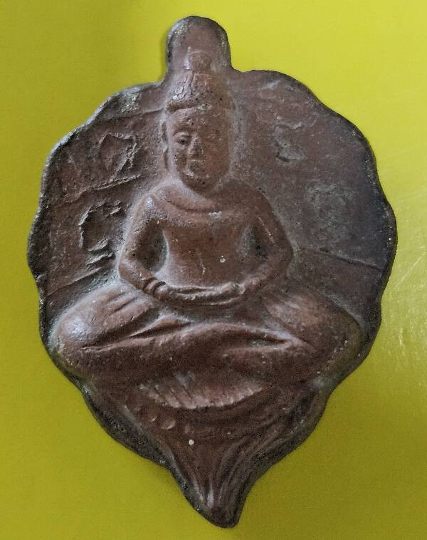 พระโพธิจักร หลวงพ่อลี วัดอโศการาม พิมพ์ใบโพธิ์ใหญ่ ขอบทอง ปี2500 เนื้อดิน |