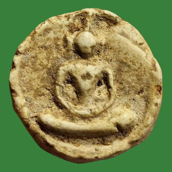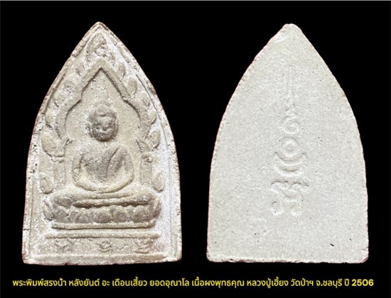 พระพิมพ์สรงน้ำ หลังยันต์ อะ เดือนเสี้ยว ยอดอุณาโล เนื้อผงพุทธคุณสีขาว หลวงปู่เฮี้ยง วัดป่าฯ จ.ชลบุรี ปี 2506