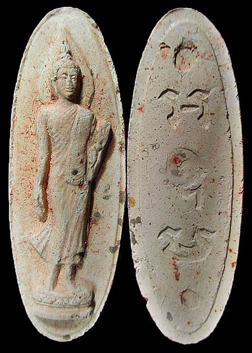 < เคาะเดียวแดง > พระลีลา พุทธ 25 ศตวรรษ เนื้อดิน ปี 2500 สวยๆ |
