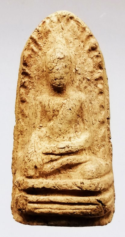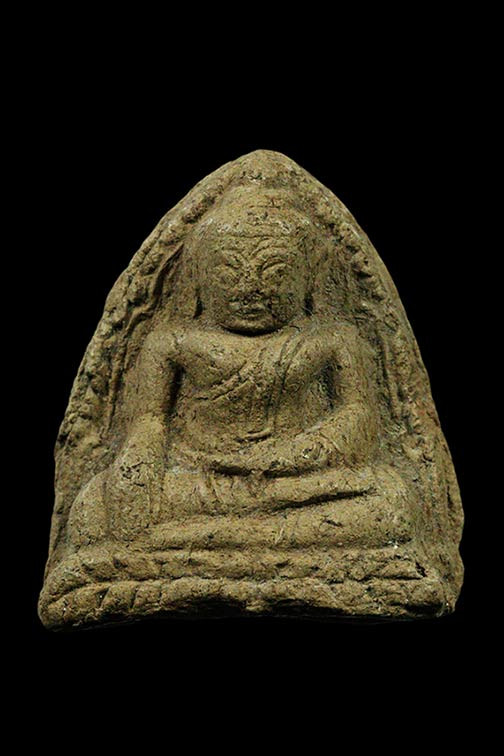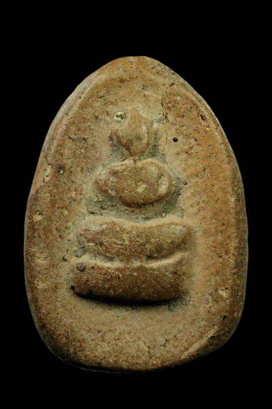 พระเนื้อผงเก่า พิมพ์สมาธิเพชร มีคราบลงรักเก่าประปรายไม่ทราบที่ |