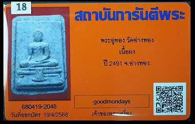 .พระพุทธ หลวงพ่อผาด วัดดงตาล พิมพ์ทรงสิงห์ เนื้อดิน ปี2474 จ.ลพบุรี + บัตรG-pra ..หลวงพ่อปานวัดบางนมโคปลุกเสก |