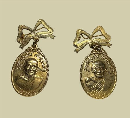 (เคาะเดียวแดง) เหรียญหลวงปู่ปาน-หลวงพ่อฤาษีลิงดำ มหาลาภ-เอกราช ปี 2520 เนื้อโลหะชุบทอง 2 เหรียญ |