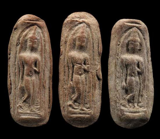 พระเม็ดบัวปรกโพธิ์ ปางสดุ้งกลับ เนื้อดิน กรุวัดราชนัดดา กรุงเทพฯ |