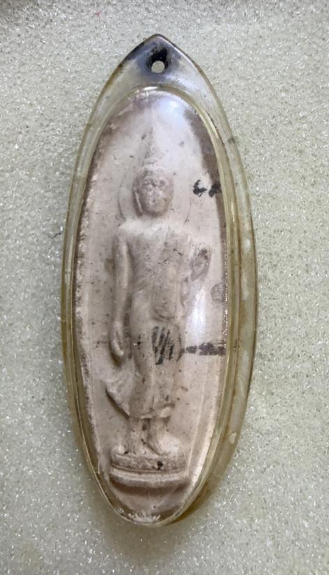 พระอม พิมพ์สมาธิห้าเหลี่ยมเล็ก เนื้อดิน หลวงพ่อหอม วัดบางเตยกลาง จ.ปทุมธานี ปี2484 หลวงพ่อจง วัดหน้าต่างนอก ปลุกเสก |